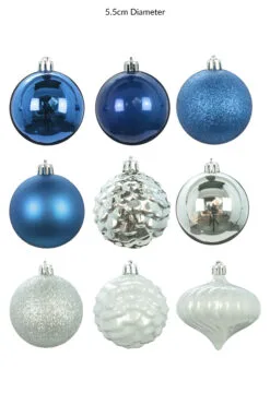 - Bauble colour: Blue and silver